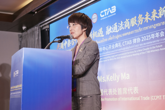 中国贸促会驻泰国代表处首席代表马艳玲女士在致辞中提出,泰国融商一带一路法律与商事服务中心落地曼谷,具有重要意义。它将助力企业更好防范风险、化解纠纷,为企业经营发展保驾护航,也将为促进区域产业链、供应链安全稳定发挥积极作用。