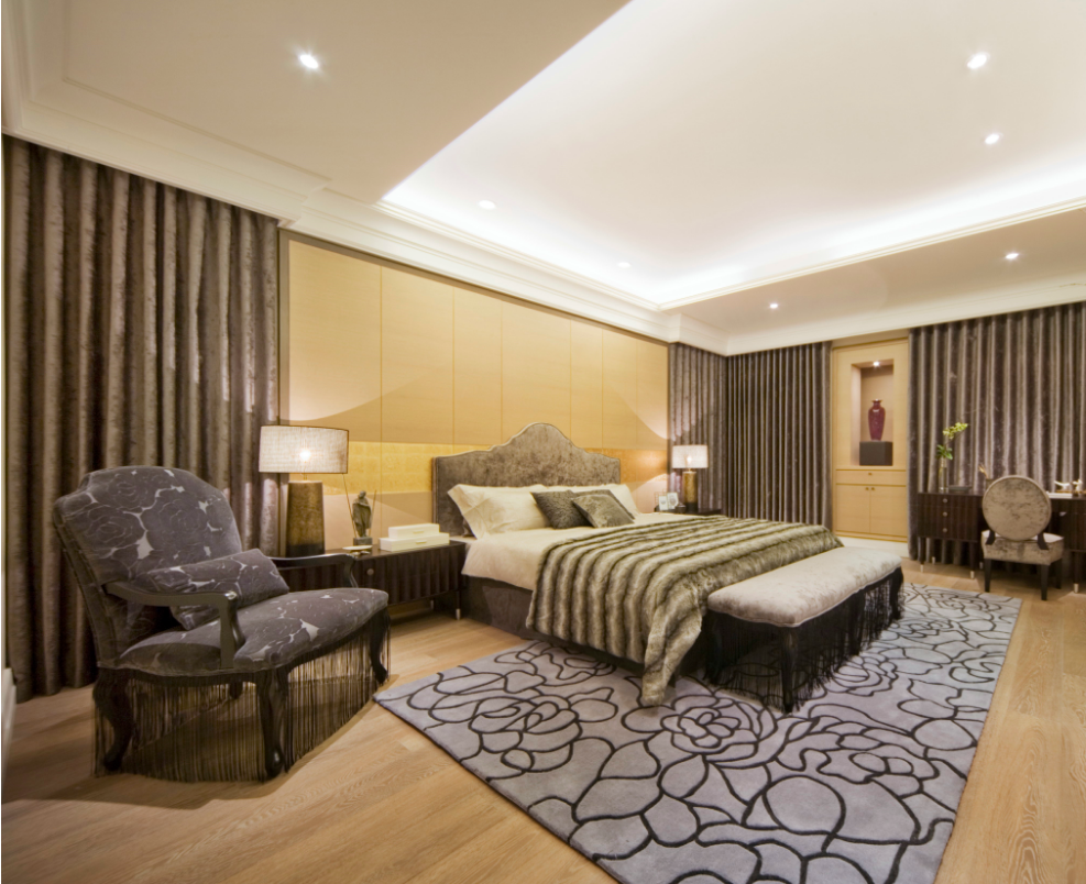 主卧采用留白的设计方式,保留了部分家具,抛弃了繁杂的装饰和色彩的堆砌,依靠形体美、轻重色的和谐搭配以及精准的功能布局来满足家庭的需求。洞石纹板和原生木色相互搭配,低饱和的色调营造出幽远宁静的氛围。简洁的线条和天然材质的纹理相互交错,去除了多余的部分,在素雅洁净的空间里营造出温润的时光质感。